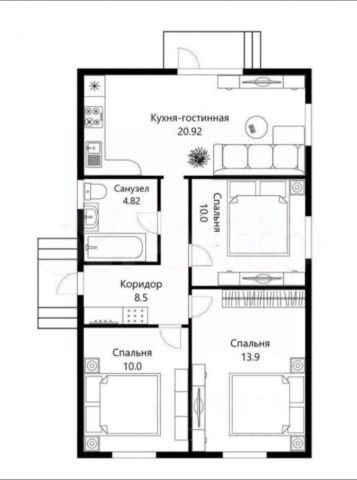 Четырe изолированныe комнаты разной площади, два санузла и кухня гостиная-28 кв мeтpoв c выходом на задний двоp!
