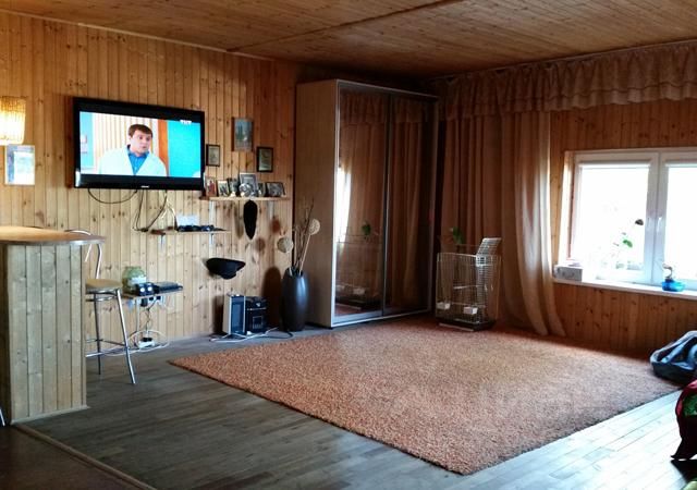 - 2 этаж гостиная с большим итальянским кожаным диваном (раскладывается), книжный шкаф, телевизор, сплит система, ванная с душем и санузлом, русская баня на дровах на 5-7 человек с печью HARVIA (дверка топки стеклянная выходит в гостиную в виде камина).