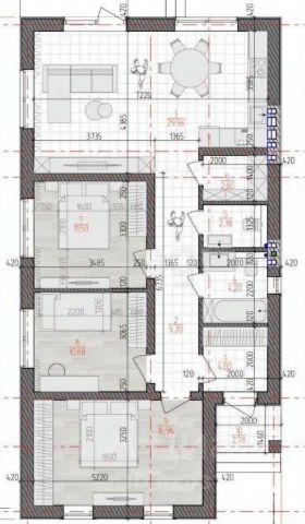 1 этаж: прихожая , кухня-гостиная - 27 м., комната-спальня- - 11,5 м.и совмещенный сан. узел.- 4,5 м., котельная - 6,2 м., выход на террасу - 11 м., гараж - 25 м (потолок подшит металлопрофилем).