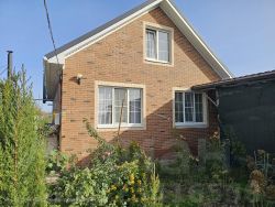 Дом возведен полностью из кирпича с использованием качественных строительных материалов: ленточный фундамент, цоколь отделан декоративным камнем, стены — забутовочный кирпич, наружные —облицовочный керамический кирпич, большие металлопластиковые окна с декоративной раскладкой, кровля — металлочерепица, качественные входные двери.