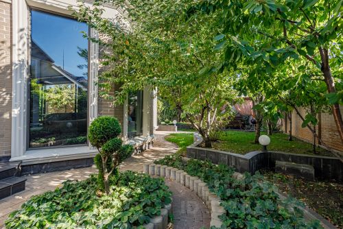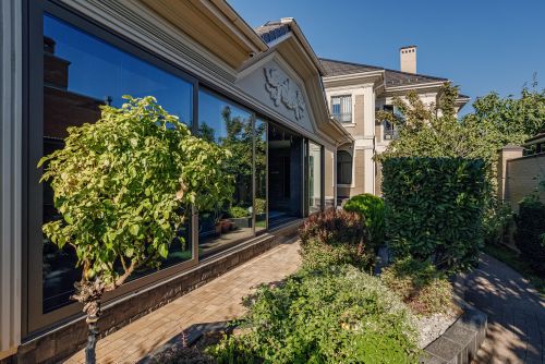 Отделка из качественных материалов и продуманные детали делают каждый элемент важным. Изящная лестница на второй этаж с перилами из чугунного литья и мраморными ступенями придает дому особую элегантность. Мраморные полы с подогревом создают атмосферу комфорта и тепла круглый год.