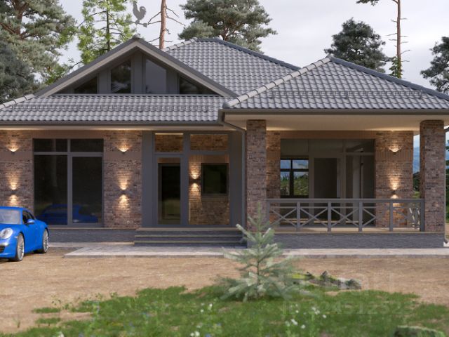 Коттедж с мансардным этажом общей площадью 135 кв.м. комфортной планировки: на первом этаже — прихожая, холл 9,8 кв.м, две изолированные спальни, просторный санузел, кухня-гостиная с выходом на крытую террасу.
