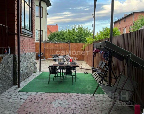 Бассейн на заднем дворе на 100 м3, так же продуманы все коммуникации, перед домом имеется небольшой бассейн, который можно использовать, как фонтан-все закладные для коммуникаций так же подведены. Есть зона для ландшафтного озеленения. Во дворе уложена плитка, цоколь дома облицован декоративным камнем, водоотливы выполнены из меди. Есть гараж с мастерской, хоз. постройка, беседка, уличный туалет и душ.