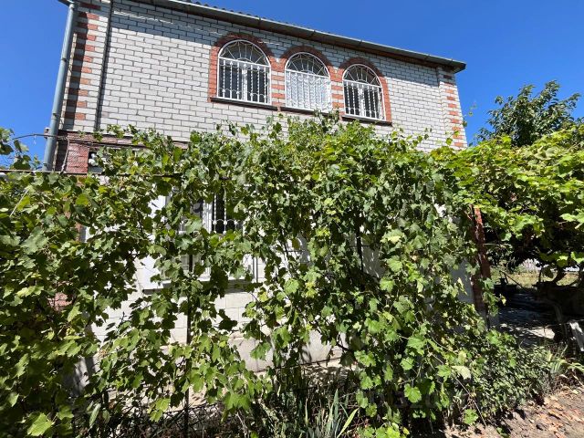 Дом построен из качественных материалов. Отделан керамическим кирпичом .Из коммуникаций в доме есть : свет 15 кв, газ проходит по меже , скважина. Дом полностью из кирпича.