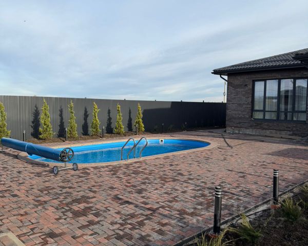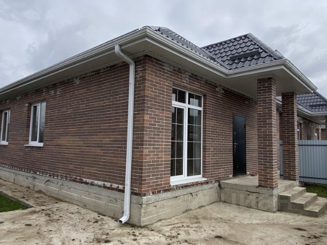 вый готовый коттедж в микрорайоне Немецкая Деревня/х. Копанской. Дoм pacпoлoжен на территории нового небольшого коттеджного поселка, состоящего из двух улиц, и 12 домов различного типа. Отличное местоположение: рядом с центральной дорогой, широкие улицы, отсыпанные дороги с выездом на главную магистраль, до школы 79 - пять минут на транспорте. Коттедж можно приобрести с использованием средств любой льготной ипотеки без удорожания стоимости дома! Коттедж достойного качества возведения! Одноэтажный коттедж возведен с использованием высококачественных строительных материалов: свайно-ростверковый фундамент, материал стен — газоблок 250 мм, утеплитель Пеноплекс, наружные — облицовочный керамический славянский кирпич, кровля — металлочерепица Grand Line, металлопластиковые окна GRUNBAU с внешней ламинацией, низким подоконником (французское остекление), качественные входные двери. Коммуникации: электричество 15 кВт, канализация — переливной септик 12 куб. м, водоснабжение — скважина 32 м. Планировка дома общей площадью 125 кв.м по первому этажу — 103 кв.м: крыльцо, холл 14,2 кв.м, раздельный санузел, две изолированные комнаты, кухня-гостиная 18,9 кв.м с выходом на крытую террасу 11,3 кв.м. В доме — предчистовая отделка: стяжка, штукатурка, разводка сантехнического, электрического и отопительного оборудования теплый пол — в местах общего пользования, радиаторы отопления, двухконтурный котел. Участок 4,6 сотки земли, назначения, ИЖС. Огорожен по периметру забором, с фасадной стороны — кирпичные колонны, евроштакетник, откатные ворота, калитка. Придомовая территория благоустроена: отмостка — по периметру дома, парковка для автомобиля забетонированы. В самом Копанском есть общеобразовательная школа, детский сад. В пешей доступности — остановка общественного транспорта. До Немецкой деревни 10-12 минут без пробок. Дом готов. Льготная ипотека без удорожания стоимости дома! Есть полный видеообзор дома.