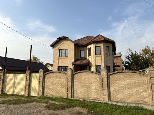 Продаётся новый дом общей площадью 105 кв.м., одноэтажный, с 4 жилыми комнатами, 2 санузлами. Дом построен в 2018 году, материал стен кирпич, облицовка штукатурка мраморной крошкой, дом накрыт металлочерепицей Пурал. Дом - интересной планировки: высокие потолки 3.2 м, есть выход на втором этаж с высоким коньком - больше 3 м. Есть возможность установить винтовую лестницу на второй этаж в коридоре или полноценную в кабинете. Кабинет - с отдельным выходом во двор, двор накрыт навесом из поликарбоната. На заднем дворе гостевой домик с кухней, кладовкой и санузлом.