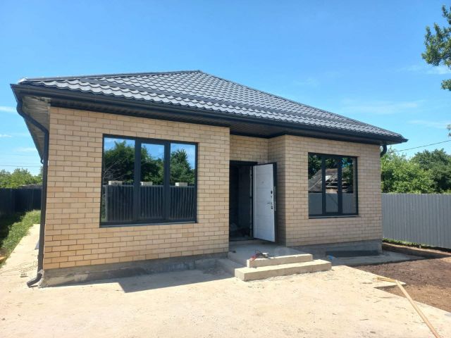 Продам новый дом в микрорайоне поселка Дружелюбный. Дом общей площадью 95 кв.м расположен на участке 4.2 сотки . Планировочное решение :Три спальные изолированные комнаты,просторная кухня гостинная с выходом на задний двор ,санузел,холл.Мансардный этаж свободной планировки. Продается в предчистовой отделке : полная электро разводка ,стены оштукатурены и ошпаклеваны ,стяжка пола,теплые полы в местах общего пользования. Хорошее местоположение: отсыпанная дорога, в шаговой доступности продуктовые магазины, остановка общественного транспорта. По периметру дома — бетонная отмостка. Внутри участка забетонированная площадка для автомобиля, откатные ворота, калитка, с фасадной стороны — забор из профнастила. В школу возит школьный автобус Коммуникации: Электричество -15 кВт, вода,канализация. Дом готов! Документы готовы к продаже!