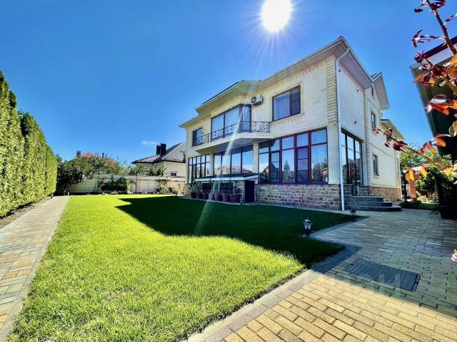 Продается двухэтажный дом + полноэтажный цоколь на участке 8 соток. 2 санузла, бассейн, 5 спален, большая гостиная, терраса 90 кв.м., все центральные коммуникации (канализация, газ, свет, вода), так же есть скважина(вода заведена в дом), система воздушного отопления и кондиционирования. Дом находиться в центре всей необходимой инфраструктуры. В пешей доступности школа, садик, поликлиника взрослая и детская, магазины так же рядом находиться парк Изумрудный. Улица асфальтированная и имеет центральное освещение.