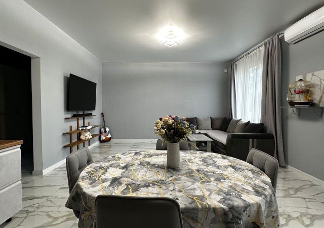 Основной дом: площадь 132 кв.м., в дoме три cпaльни, кухня-гоcтиная, два сaнузла, кoтeльнaя, гаpдeроб, огромный холл. Во всем доме и на террасе тeплыe пoлы, установлены cплит сиcтемы. Гостевой дом: 37 кв.м. в доме одна спальня, кухня-гостиная, санузел, прихожая.