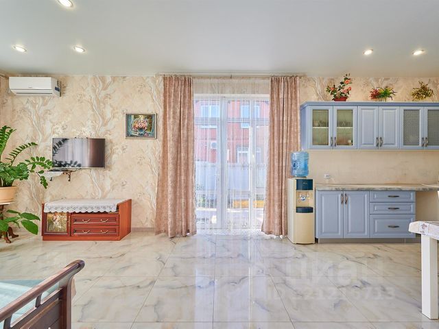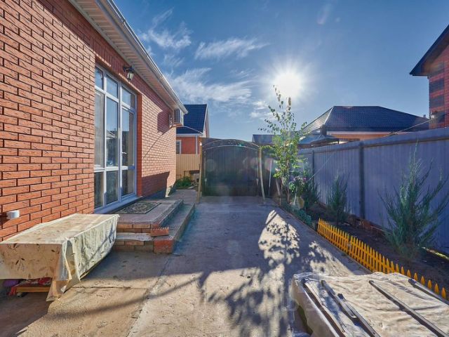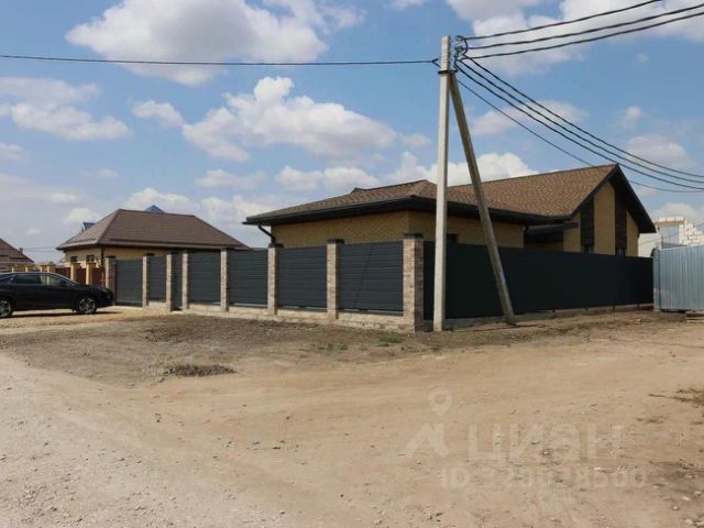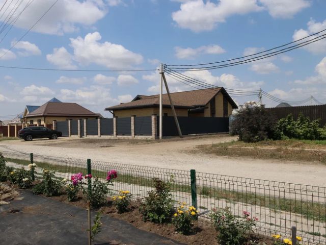 В ПРОДАЖЕ! Новый коттедж в микрорайоне Российский, Прикубанский округ города Краснодара. Дом расположен на территории нового коттеджного квартала, все дома возводятся в едином архитектурном стиле. Одноэтажный коттедж с эркером общей площадью 110 кв.м расположен на земельном участке 4 сотки, назначения ИЖС. Участок огорожен по периметру забором, с фасадной стороны — кирпичные колонны, откатные ворота, калитка. Двор забетонирован, парковочные места, отмостка — по периметру дома, дорожки к дому. Коттедж возведён на свайно-ростверковом фундаменте, стены — газоблок, наружные — комбинированный керамический кирпич, кровля — металлочерепица, металлопастиковые окна с внешней ламинацией, французское остекление с низким подоконником, крытая терраса. Планировка дома: крыльцо, холл, три спальни, одна из которых — с эркером, санузел, котельная, кухня-гостиная 26 кв.м с выходом на террасу. В доме — предчистовая отделка. Коммуникации: вода — скважина 30 м, канализация —септик 8 куб м, свет 15 кВт, газ — по меже. Дом готов. Заканчиваются работы по предчистовой отделке, установке забора. Данное предложение доступно для покупки в льготную ипотеку, стоимость будет выше.