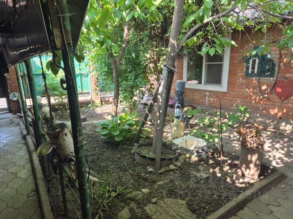 Участок ухоженный, с газоном. Высажены хвойные насаждения, есть крупные деревья - орех, алыча, черешня. Деревья закрывают участок от прямого солнца, летом не так жарко.