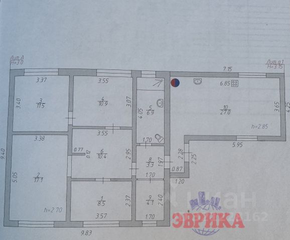 - Общая площадь дома 110.2 м², жилая площадь 56.6 м², кухня 8.1м², высота потолков 2.95 м. Год постройки дома 1989, кирпичный, с оборудованным подвалом.