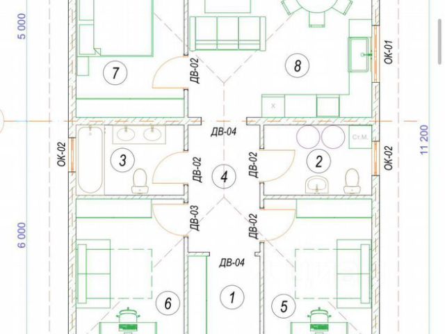 - Планировка дома: 6 изолированных жилых комнат, 2 санузла, ванная, светлая кухня площадью 10.9 м² и топочная 7,1м², 2 прихожие площадью 6.1 м² и 15,6 м² . В доме пластиковые окна с решетками, на полу паркет, потолки на 1-м этаже оштукатурены, на 2-м этаже обшиты вагонкой, на стенах поклеены обои. Все комнаты обставлены мебелью, окна выходят на улицу и во двор. Все коммуникации центральные. Дом теплый, сухой, сырости нет.