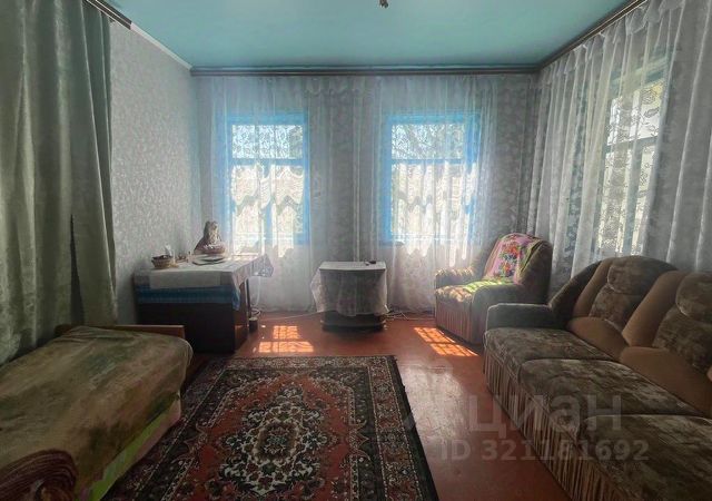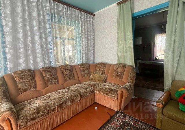 В доме три комнаты 16,8 м2 смежная и 16 м2 и 7,2 м2 - изолированные, прихожая, кухня 7,5 м2, совмещенный санузел. Газовая труба проходит по участку, рядом с домом. Отопление печное, вода-центральная, канализация-септик. Есть скважина с глубинным насосом. В доме можно жить, а можно использовать для хранения стройматериалов. Дом саманный, облицовка — деревом. На участке имеются погреб, уличный туалет и душ.