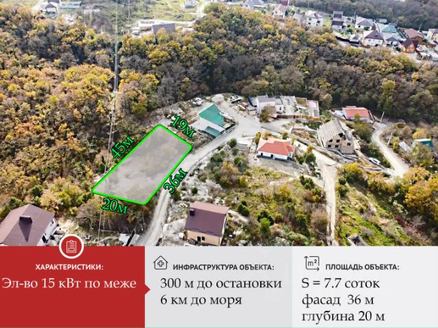** Продается земельный участок в Глебовке, СНТ Фазан 2 — идеальное место на жизнь в гармонии с природой! ** Предлагаем к продаже привлекательный участок площадью **7,7 соток** в живописном районе **СНТ Фазан 2**. **Характеристики участка:** - Площадь: **7,7 соток** - Фасад: **36 метров**, глубина: **20 метров** - Участок соседствует с уже построенными жилыми домами, что создает ощущение уюта и безопасности. **Природное окружение:** - Одна сторона участка граничит с лесополосой, обеспечивая простор и великолепные панорамные виды на горы. **Удобная транспортная доступность:** - Остановка общественного транспорта "База отдыха Фазан" всего **300 метров** от участка. - До школы — **1 остановка на маршрутке** или **3 минуты на автомобиле**. **Близость к пляжу:** - До пляжа Южной Озереевки всего **10 минут на автомобиле** (6 км). - До Красной площади — **20 минут на автомобиле** (11 км). Этот участок — идеальное место для строительства вашего загородного дома, где вы сможете наслаждаться тишиной и красотой природы. Не упустите возможность стать обладателем этого уникального предложения! Участок требует расчистки. Звоните сейчас, чтобы узнать больше и договориться о просмотре! Ваш новый дом ждет вас!. Дополнительно оплачивается комиссия с покупателя. Код пользователя: 173097 Номер в базе: 8457809