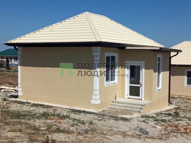 Арт. 58011650. Дом продается в Краснодарском крае станица Раевская. Станица расположена в 20 км от Новороссийска и в 30 минутах езды до Анапы. Станица большая с развитой инфраструкторой. Две школы, музыкальная школа, два государственных садика, частные, больница, спорткомплекс, стадион, множество детских площадок, парк. Есть большое количество магазинов, супермаркетов, Willbеrriеs, Оzоn, рынок и ярмарка. Также ходит общественный транспорт, как по Раевской, так и в Новороссийск, Анапу и ближайшие курорты Краснодарского края. В шаговой доступности от дома находятся продуктовые и хозяйственные магазины, остановка общественного и школьного транспорта. Переулок частично газифицирован, у соседей есть газ. Дорога на улице бетонная и отсыпанная. Весь переулок жилой. Дом построен в 2021 году, одноэтажный, 80 кв. м, стены блок керамзит 20 см, ленточный фундамент, плита, колонны, утепленные перекрытия 150 мм, фасад утеплен, ППС 25 ф. 80 мм. Проводка, свет 15 кв, отопление, окна большие (отличного качества, 70 мм профиля), хорошая металлическая входная дверь, есть скважина 100 м, стоит насос. ВОДА есть. В доме две спальни, высота потолка 3 метра, огромная гостинная, коридор, санузел. При желании можно сделать третью изолированную спальню. Окна спален выходят в сад с фруктовыми деревьями 4-5 лет (слива, яблоки, вишня, черешня, персики, орехи), которые уже дают урожай. Участок 5 соток, есть заборы межевые от соседей, большая придомовая территория. Звоните, отвечу на все вопросы, проведу показ. Помогу с одобрением ипотеки