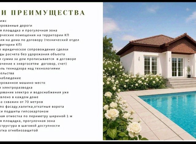 Все инженерные коммуникации: электричество, водопровод, канализация, отопление, интернет, охрана, дороги.