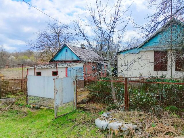 метало-пластиковые окна, 2-е изолированные комнаты, зал, просторная кухня, кладовая, санузел, душевая кабина, баня, мебель остается частично (по договоренности). Дом с небольшими балками на потолке. Потолок не высокий. С одной стороны обложен кирпичом. Газ в дом заведен, но не подключен. Есть свет, вода. отапливается дуйками. Дом для людей которых интересует земля больше чем дом. В доме требуется ремонт. Высота потолка примерно 2.30.