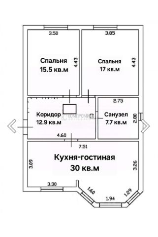 2 спальни, кухня-гостиная, санузел, просторный коридор;