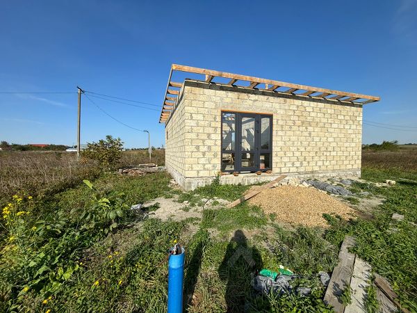 Продаётся дом на стадии строительства Площадь дома: 72,3 кв. м. Участок угловой: 4 сотки, размер — 20 20 метров. В доме: две спальни (16,1 и 10,6 кв. м); коридор (7,3 кв. м); кухня-гостиная (20,6 кв. м); терраса (12 кв. м); санузел (5,7 кв. м). Коммуникации: свет (15 кВт) заведён; вода — скважина; канализация — септик; газ проходит по меже. Расположение: район развивающийся, земли населённых пунктов, вид разрешённого использования — индивидуальное жилищное строительство. Расстояние между участками 50 метров, шикарная придомовая территория. Строился с соблюдением требований законодательства (с археологическим контролем и уведомлением о начале и соответствии строительства). Что позволяет приобрести дом по любой ипотечной программе с использованием мат. капитала.