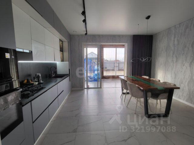 В продажи абсолютно новый дом, окончание строительства июль 2024года, ИНДИВИДУАЛЬНЫЙ ДИЗАЙН, дом продается готовый и мебелированый, с встраиваемой техникой и с сантехникой, по периметру забор из профнастила, с фасада забор из габионов, дизайнерские откатные ворота с автоматикой алютех, так же установлено видеонаблюдение, Ip домофония