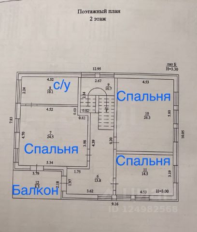 коридор 13.8 кв .м., три спальни (26.3 кв. м., 24,5 кв. м., 14,5 кв. м.), сан.узел 10,1 кв. м., балкон 8,3.