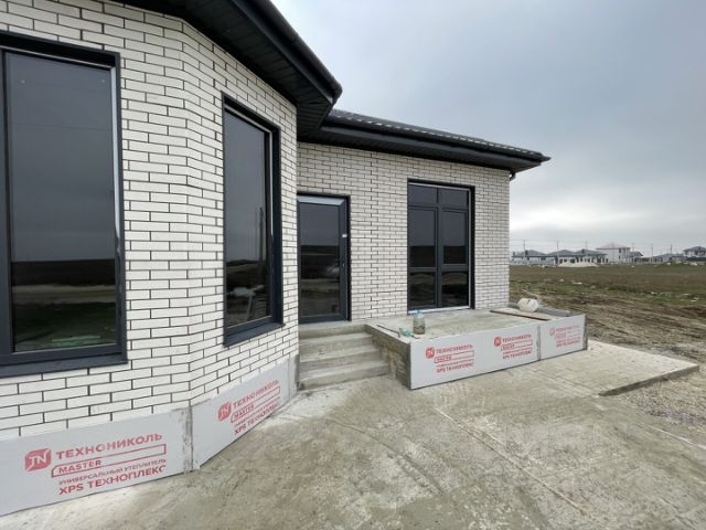 Дом построен из блока обложенного кирпичом, с утеплением между ними. Толстые стены дома обеспечивают тепло зимой и прохладу летом, создавая идеальный микроклимат внутри. Окна дома выполнены из пластикового профиля, крыша из металлопрофиля.