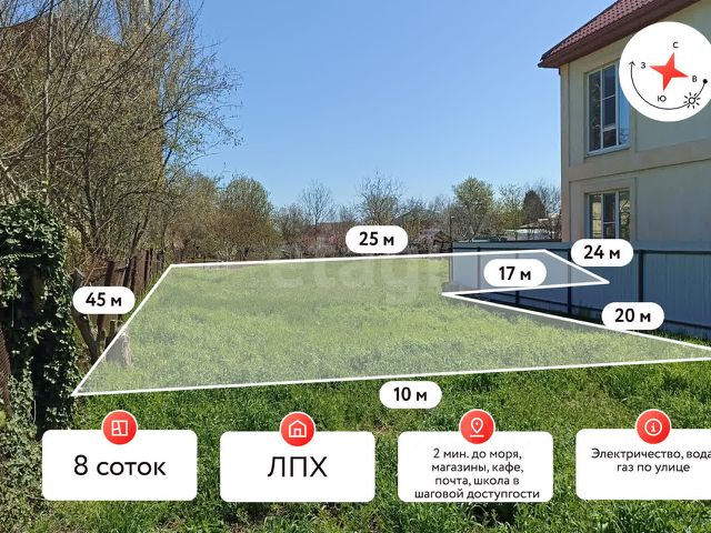 В продаже ухоженный участок 8 соток в центре курортного посёлка Пересыпь! Участок ровный и готовый к строительству Вашего нового дома на море Участок визуально разделен на 2 сектора: На въезде 2 сотки отлично подойдут для организации входной группы (навес, парковка, постройка гостевых номеров для сдачи отдыхающим) В центре участка 6 соток непосредственно для постройки дома, организации ландшафта и создания уюта. Со второго этажа Вашего будущего дома будет отличный вид на Азовское море Газ, электричество и центральный водопровод в соседнем доме -быстрое подключение всех коммуникаций Подъезд к участку удобный, соседи проживают постоянно Транспортная доступность: До благоустроенного пляжа на Азовском море всего 2 минуты пешком В пешей доступности всё необходимое: кафе, столовые, магазины (в том числе Пятёрочка), почта, школа 22, остановки общественного транспорта и многое другое До Краснодара - 1,5 часа, до Темрюка -15 минут, до Чёрного моря (пос. Веселовка) - 50 минут на автомобиле Один собственник. Без обременений. Звоните! Организую показ и быструю, безопасную сделку!. Дополнительно оплачивается комиссия с покупателя. Код пользователя: 187282 Номер в базе: 9630810
