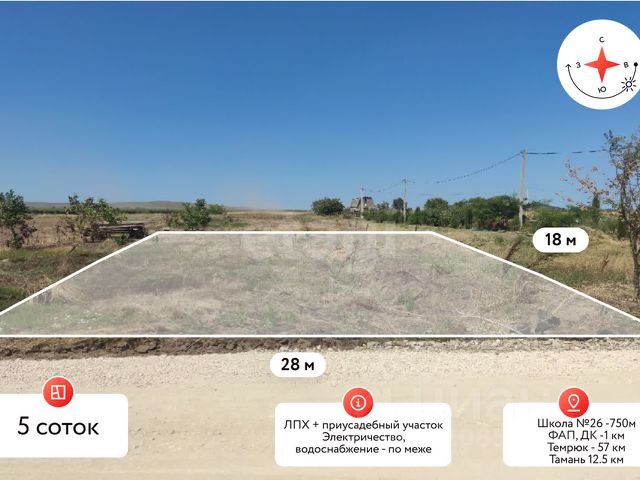 Продается участок на приморском поселке Прогресс в Темрюкском районе Подходит под льготную семейную ипотеку 6%, под строительство своего дома мечты! Характеристики: - Площадь - 5 соток, - Фасад 28 и 18 метров - Угловое месторасположение, благодаря чему есть два подъезда к участку - Прямоугольной формы, ровный, без уклонов Назначение - для ведения личного подсобного хозяйства (приусадебный зеленый участок)(ЛПХ). Есть уникальная возможность расширить площадь, благодаря приобретению смежного участка. Коммуникации: Электричество - по меже участка (нужно только подключиться). Газификация по меже. Этот участок находится в активно развивающимся районе, и в тоже время в спокойном поселке. Инфраструктура: Школа 26 - 750 м ФАП (Амбулатория) - 1 км До центральной улицы Мартыненко всего 300 м Пляж Черного моря (ст.Тамань) - 12.5 км До города Темрюк - 40 минут минут на машине, До берега Азовского моря (п. Кучугуры) - 35 минут на машине до Анапы (Черное море) - 80 км Один взрослый собственник, никаких обременений нет, быстрый выход на сделку. Не упустите возможность стать обладателем этого участка и построить свой дом у моря!. Дополнительно оплачивается комиссия с покупателя. Код пользователя: 187265 Номер в базе: 9270297
