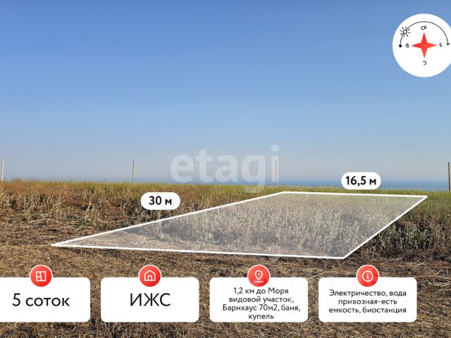 Совсем рядом находится море с пляжем, с холма открываются шикарные виды на море в разные стороны. Если вы любите сухой воздух, ясное солнце, тёплый климат, немного ветренную погоду и хотите жить поближе к Чёрному морю, добро пожаловать в этот небольшой посёлок, с наличием рабочих мест на предприятиях, расположенных поблизости.