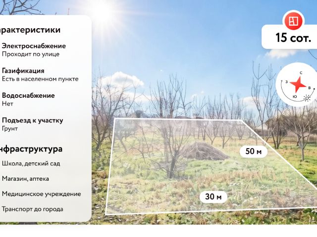 Дом находится в зоне с прекрасной экологией, чистым воздухом и мягким теплым климатом. Двор выложен плиткой. Также есть русская баня, летняя кухня и сельскохозяйственные строения. На участке 8 соток огород с плодоносящими деревьями: персик, яблоки, черешня, виноград " Изабелла". На земельном участке есть скважина для полива огорода. Имеется сухой, вместительный погреб, стены выложены кирпичом.