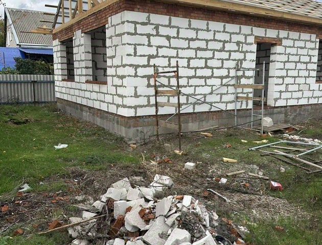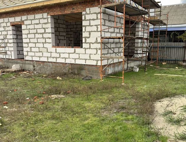 СЕЛЬСКАЯ ИПОТЕКА 3% !Газоблочное домовладение, в процессе строительства, о.п., примерно, 107,4 кв.м., расположенное в ст. Фастовецкая по ул. Ленина. По проекту: двухэтажное домовладение, кровля - металлочерепица, фундамент - двойное армирование. Второй этаж состоит из двух комнат раздельного расположения, гардеробная, совмещенный с/у, незастекленный балкон. На первый этаж ведет деревянная лестница. Первый этаж состоит из кухни-гостинной, гардеробной, совмещенного с/у и коридора. Выполнен монтаж электропроводки во всех комнатах, а также монтаж труб канализации и водопровода по всему дому. Частично, установлены металлопластиковые окна (часть будет панорамные). Отопление - газовый котел. Входная дверь - металлическая. Центральная канализация.Земельный участок, примерно, 5,7 соток. Домовладение находится в центре станицы. Инфраструктура района развита, в шаговой доступности магазины различных групп товаров, школа, администрация, почта, детский сад, остановки общественного транспорта, словом сказать, есть все для комфортной жизни.