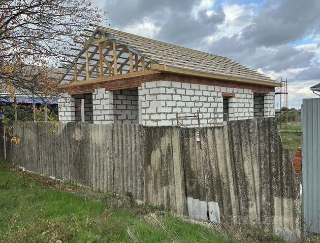 Здание из газоблока, кровля - металлопрофиль, о.п. 62,9 кв.м.. Состоит из двух помещений смежного расположения, с/у и коридора. Стены оштукатурены, полы облицованы плиткой. Установлены металлопластиковые окна. Входная дверь - металлическая. Электро- и водоснабжение заведены, газоснабжение проходит по меже. Есть место для стоянки автомобилей. На всей территории земельного участка залит фундамент (на 400 кв.м., есть возможность построить двухэтажный дом), заложены закладные на конструкцию из сендвич-панелей. Инфраструктура района развита (центр станицы), в шаговой доступности магазины различных групп товаров, Дом Культуры, детский сад, школа, парк, аптеки, продуктовый рынок и т.д