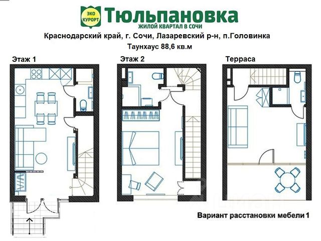 В продаже двухэтажный таунхаус в жилом комплексе Тюльпановка в Сочи, всего в 100 метрах от моря!