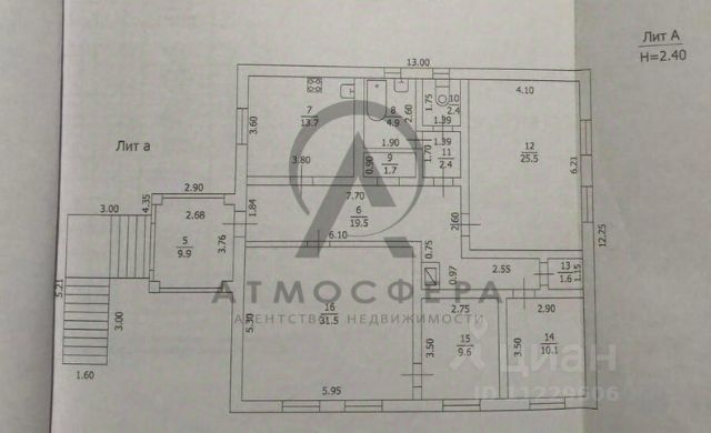 Двух этажный капитальный дом расположен на 17.4 сотках земли.