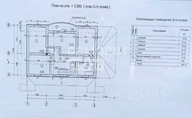 2 этаж: Коридор (12), 3 спальни (13,15,16) и санузел (14).