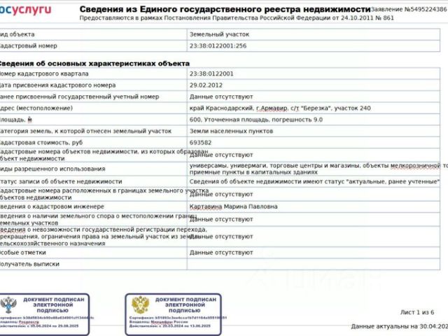 Продам земельный участок, ИЖС, г Армавир, улица Пригородная, 26, кадастровый номер 23:38:0304000:628. Район Красной поляны, по направлению Армавир-Красная поляна, слева, на въезде, возле 5-ти этажного дома. Фасад 20 м, длина около 30 м. 594 кв.м. Свет есть, Газ подключат по программе. Стоимость 320 000 за сотку. Торг реальному покупателю.