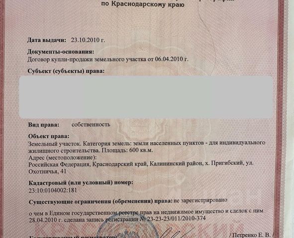 Продам земельный участок под личное подсобное хозяйство, земли населённых пунктов. Краснодарский край, Калининский район, село Гришковское, ул. Широкая, 50. Кадастровый номер 23:10:0703001:351. Участок ровный, разработанный. Рядом дорога и электричество. В посёлке газ, местный водопровод, школа, дом культуры, сбербанк, почта, магазины, детские площадки. На данный момент участок находится на земле сельхозназначения. В 2024 году категория его земли будет изменена на жилую застройку, проект уже разработан градостроительным отделом. Через год на нём можно будет строить жилой дом. Один собственник. Продается участок ИЖС (индивидуальное строительство) в Калининском районе Краснодарского края.