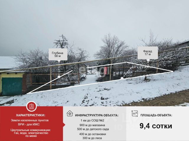 В продаже земельный участок в городе Крымск Краснодарского края! Участок ровный - 9,4 сотки, имеет фасад 16,8 метров. Подъезд к участку отсыпан щебнем, организован выход в лес с обратной стороны от фасада. Категория земель - земли населенных пунктов, вид разрешенного использования - для индивидуального жилищного строительства. Имеется строение - небольшой сарай. Остановка общественного транспорта в четырехстах метрах, магазины, школа, детский сад в шаговой доступности. До центрального рынка пять километров или 10 минут на машине. До Краснодара 100 километров, Новороссийска 45 километров, до Анапы 60 километров! Подробности по телефону! Звоните!. Дополнительно оплачивается комиссия с покупателя. Код пользователя: 93024 Номер в базе: 5341594 Купить участок под индивидуальное жилое строительство с коммуникациями в Крымске.