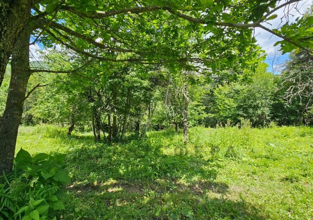 Место очень красивое и далекое от суеты и цивилизации. Вокруг зеленые горы, укрытые пихтами, горные озера и шикарные водопады. Вода в реках кристально чистая.Участок ровный.