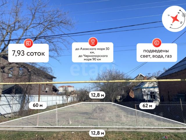 Земельный участок площадью 7,93 соток с фасадом 13 метров, подходит под Семейную ипотеку. К границам участка подведены все необходимые центральные коммуникации — электричество, водопровод, газ. Удобная вытянутая форма и значительная ширина фронта обеспечивают простор для планировки дома и ландшафтного дизайна. Участок расположен в активно развивающемся Центральном районе. Ключевое преимущество — развитая инфраструктура в шаговой доступности: -общеобразовательные школы 17 - от 5-10 минут прогулочным шагом -детские сады 1 - от 10-15 минут прогулочным шагом -детская поликлиника, парк развлечений, музеи, картинная галерея, набережная, пиццерии, кафе - от 10-15 минут пешком -сетевые магазины: Пятерочка, Семейный Магнит, Гипермаркет Магнит, Агрокомплекс, Оzon, Wildberries, Fix Price, центральный рынок "Привоз" - 10/15 минут пешком -остановки общественного транспорта в 5 минутах ходьбы. Местоположение района обеспечивает баланс между тишиной жилой зоны и транспортной доступностью к основным магистралям. Город обладает выгодным географическим положением: до побережья Азовского моря (п. Ачуево, п. Кучугуры Славянского района)— 50 км, до Черноморского побережья (г. Анапа, г. Новороссийск, Геленджик) —90/130 км. Звоните - и Мы поможем Вам осуществить свою жилищную МЕЧТУ !!! . Дополнительно оплачивается комиссия с покупателя. Код пользователя: 197853 Номер в базе: 10936687