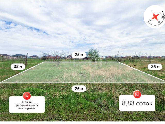 Участок 8,83 сот в перспективном развивающемся микрорайоне! Основные характеристики: - участок в собственности; - площадь: 8,83 сот (25*35 м); - участок отмежеван. Некоторые факты о развитии микрорайона: - Застройка ведётся с 2012 года - Построено порядка 58 км инженерных сетей: - 27 км газоснабжения, - 11 км водоснабжения, - 17 км канализации, более 2 км электроснабжения. По муниципальной программе за счёт средств местного бюджета постепенно выполняется грейдирование и отсыпка улиц гравием. Свяжитесь с нами, чтобы: - договориться о просмотре; - получить консультацию по возможным вариантам застройки. Ваш будущий дом начинается здесь — сделайте первый шаг к комфортной жизни!. Дополнительно оплачивается комиссия с покупателя. Код пользователя: 197966 Номер в базе: 12267116