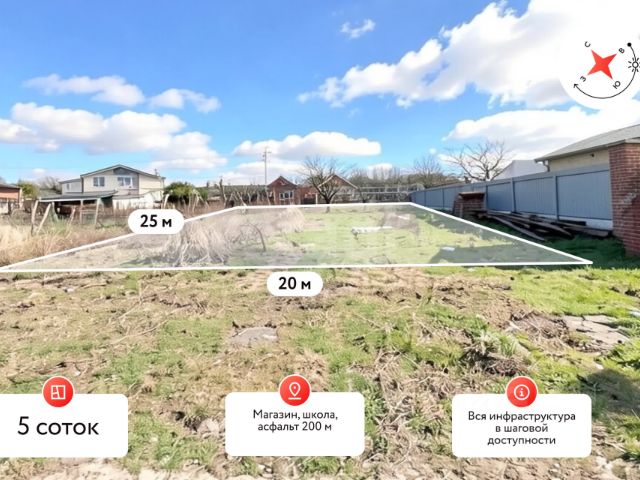 Участок площадью 5 соток с широким фасадом в 22 метра представляет собой готовую и удобную площадку для строительства индивидуального дома. Ключевым преимуществом является особенность, что участок угловой, заезд с двух сторон, появляются дополнительные возможности для зонирования территории. Все необходимые центральные коммуникации проходят в непосредственной близости, что существенно упрощает и удешевляет процесс подключения. Район активно развивается, о чем свидетельствует новый жилой дом на соседнем участке, где уже проживает семья. Инфраструктура сформирована: общеобразовательная школа находится в 2-3 минутах неспешной ходьбы, а продуктовый магазин — буквально в одной минуте. Главной особенностью локации является тихая, спокойная атмосфера и непосредственная близость к природе. Берег реки Протоки находится в шаговой доступности, что открывает возможности для рыбалки и отдыха на воде. Участок идеально подойдет для тех, кто ценит баланс между развитой бытовой инфраструктурой, транспортной доступностью и преимуществами загородной жизни у воды. Текущее состояние территории позволяет начать строительство в кратчайшие сроки. Для получения детальной информации и организации просмотра доступен телефон для связи. . Дополнительно оплачивается комиссия с покупателя. Код пользователя: 197131 Номер в базе: 11879839