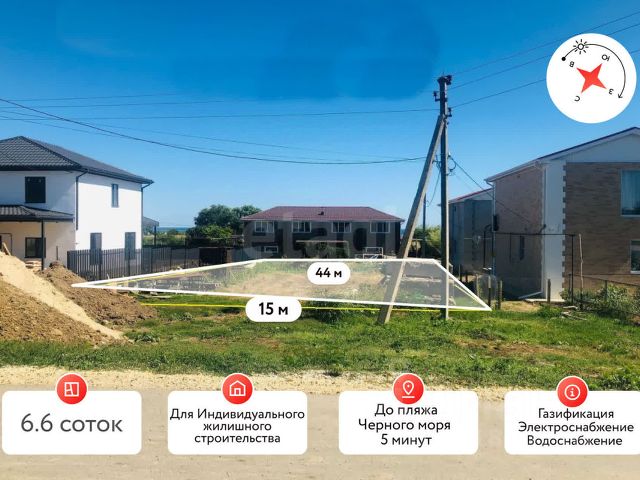 Совсем рядом находится море с пляжем, с холма открываются шикарные виды на море в разные стороны. Если вы любите сухой воздух, ясное солнце, тёплый климат, немного ветренную погоду и хотите жить поближе к Чёрному морю, добро пожаловать в этот небольшой посёлок, с наличием рабочих мест на предприятиях, расположенных поблизости.