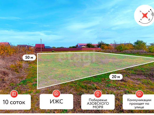 Объект 166294. СВОЙ УЧАСТОК У МОРЯ!!! ЧИСТОЕ АЗОВСКОЕ ПОБЕРЕЖЬЕ!!! Продается участок в 700 метрах до моря!!! - Развитый курортный поселок - До центра 5 минут на авто - Есть всё необходимое как для жизни, так и для полноценного отдыха на курорте - Поселок активно развивается. Строятся и реставрируются объекты инфраструктуры - Удобная транспортная развязка. Легко добраться до Черного моря и Крыма Успейте приобрести свой кусочек земли на побережье!!!