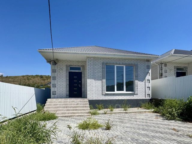 В продаже новый 1-этажный жилой дом. Расположен в ближайщем пригороде Анапы, поселок Супсех. Общая площадь дома 83 кв.м, земельный участок 4.3 сотки земли. В доме две спальни, кухня гостиная с витражным окном, с/у. Внутри выполнена качественная предчистовая отделка, потолки зашиты гипсокартоном. Белые стены под обои, по всему дома разводка электричества, воды и канализации, стяжка полов. Дом расположен на тихой улице. Перед домом двор выложен брусчаткой. Участок огорожен капитальным забором, установлена калитка и ворота для автомобиля. Коммуникации, свет 15 квт, вода скважина 50 метров, септик. До города 3 км.