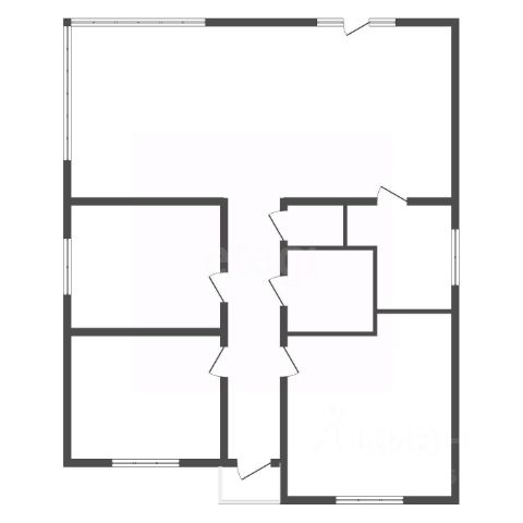 Планировка дома: просторная прихожая, две большие комнаты и две маленькие комнаты, кладовка.