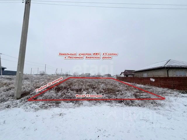 Объект 163763. Срочная продажа цена на месяц!!!! Участок со всеми документами выход на сделку день в день. Продам Земельный участок в х. Песчаный по ул. Ладожская 4,5 сотки ИЖС с Разрешением на строительство, полной стоимостью в договоре купли продажи. Участок пустой, ровный. Фасад 15 метров на 30 метров. Есть Разрешение на строительство на 10 лет, выполнены работы по Археологии получены разрешения с всех органов для строительства, препятствий нет. По Фасаду участка стоят столбы, рядом дома стоят на кадастровом учете с подключенным эл-ом и интернетом. Через улицу дома подключены к Газу в 500 метрах Газовая подстанция. Получена Адресная справка. Кадастровый номер соответствует Адресу. Ипотеку рассмотрю с задатком. Вся сумма в договоре. Документы готовы к сделке. БЕЗ ТОРГА. Дорога к участку отсыпана гравийным камнем, по кругу есть построенные дома проживают соседи. Через улицу в готовые дома соседи завели и заводят газ. Район хорошо развивается имеет потенциал будущего большого поселка. Остановка автобуса в 1,4 км, продуктовый магазин 1,4 км. Средняя школа 3 в 3 км., детский садик в 2 км. Магнит и Пятерочка в 2 км. Хорошая автомобильная развязка. Вдалеке от отдыхающих и суеты одновременно с удобным выездом в сторону г. Анапа и направления с. Джигинка. До г. Анапа на автомобиле 30 минут, маршрут автобуса ходит 114 каждые 30 минут. Готовые участки для Вашего строительства без забот. Покупаете и сразу начинаете строительство. Разрешение на строительство есть, Ипотеку рассматриваем, Археологические изыскания проведены, вся сумма в договоре, адресная справка есть. Покупай и строй с возможностью расширения. Звоните, пишите.