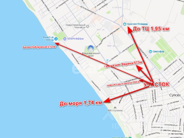 Объект 174290. Продам земельный участок 4.7 соток в поселке Супсех. Участок находится по правой стороне , заезд с асфальтированной улицы Лермонтова. Участок сухой с красивейшим видом на Анапу и море. Соседние участки застроены, соседи прекрасные люди. Участок чистый и ровный без строений. Фасад участка 16 метров, коммуникации: газ, электричество, водопровод центральные. Назначение ИЖС , для постройки дома или коттеджа по вашему или нашему проекту. Подходит под все ипотеки. Есть возможность построить одно этажный или двух этажный дом под семейную ипотеку. В поселке есть школа , детский сад, поликлиника, спортивная школа, есть парки для прогулок, магазины " Пятерочка", "Магнит" До моря 10 минут на машине, до Анапы 1 км.