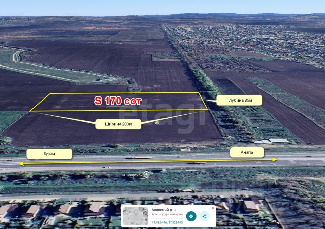 В продаже участок в новом, развивающемся районе пригорода Анапы! Сельхоз земля, можно строить дачу и наслаждаться свежим воздухом! Участок 10 соток, фасад 40м, глубина 25м. Участок ровной, прямоугольной формы. Столб с электричеством рядом. Вокруг уже есть новые постройки. Рядом асфальтированное шоссе, 20км до города. Ходит общественный транспорт. Есть сетевой магазин Магнит, пункты выдачи и т.д. В продаже два участка рядом По всем вопросам звоните.. Код пользователя: 168662 Номер в базе: 10096290